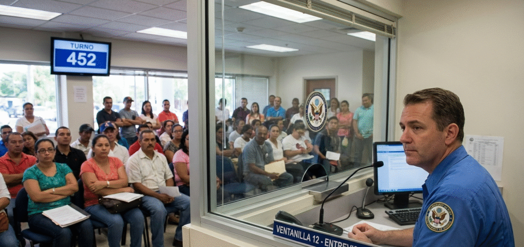 El oficial examina la claridad del discurso, la coherencia de las respuestas y la seguridad con que el solicitante explica su situación durante la entrevista. No es un interrogatorio, sino una validación directa del perfil.