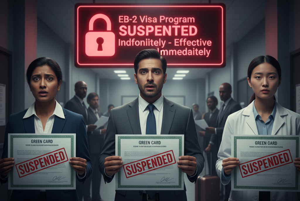 Si ya presentaste tu I-140 (Petición de Inmigrante) y esperas ajustar tu estatus (Formulario I-485) o recibir una visa de inmigrante, la suspensión puede significar: